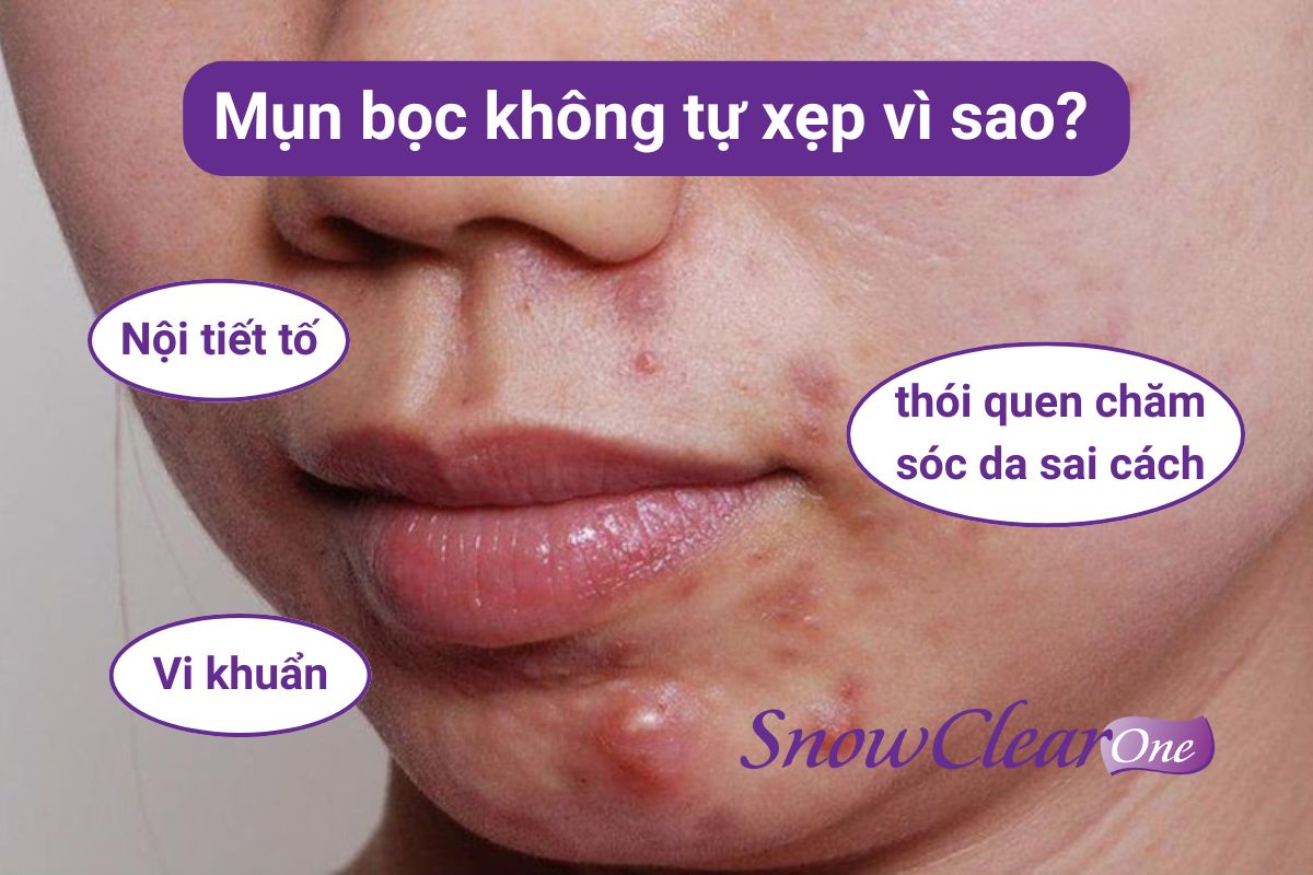 Trái ngược với những trường hợp mụn có thể tự biến mất, nhiều người lại gặp tình trạng mụn bọc không tự xẹp mà ngày càng sưng to, đau rát và kéo dài. Nguyên nhân của hiện tượng này thường xuất phát từ sự kết hợp của vi khuẩn, nội tiết tố và thói quen chăm sóc da sai cách.