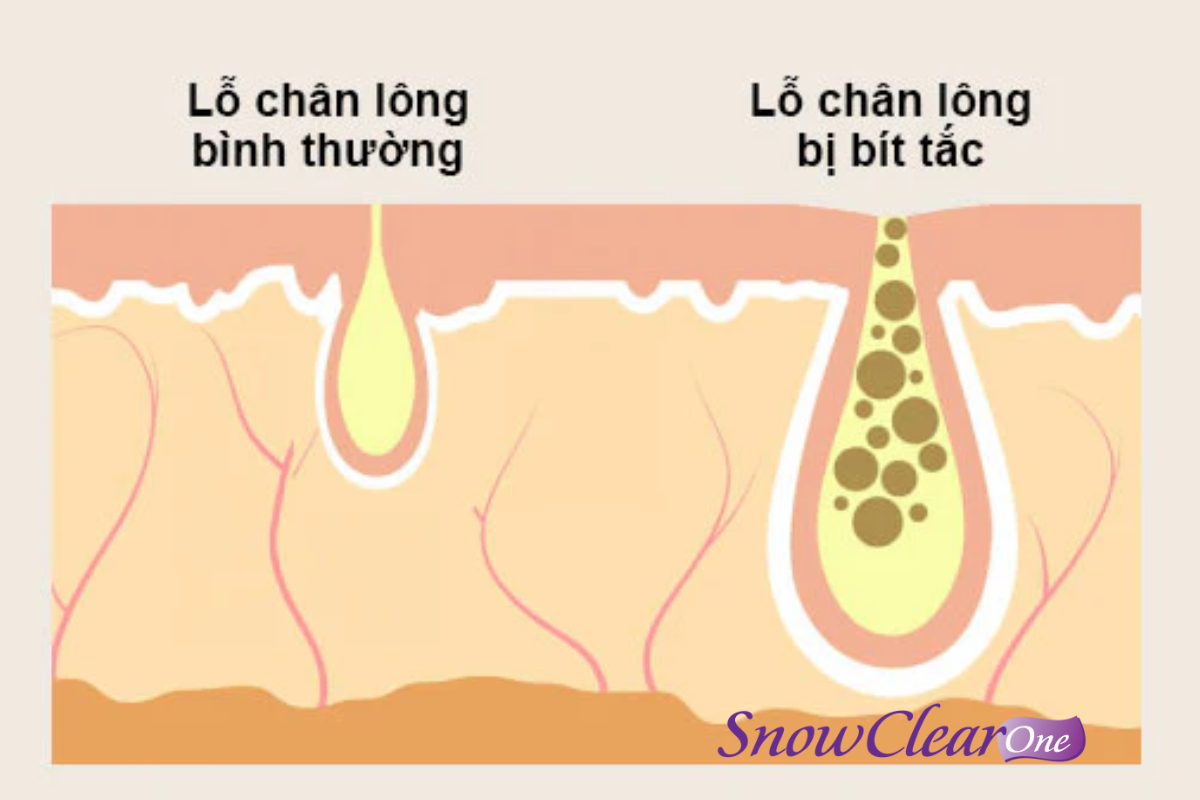 Rửa mặt không sạch, lười tẩy trang sau trang điểm hoặc dùng mỹ phẩm không phù hợp làm tình trạng bít tắc nang lông càng trầm trọng. Mũ bảo hiểm, tóc mái bẩn hoặc dầu gội để lại cũng làm tăng nguy cơ mụn viêm gần chân tóc và vùng trán.