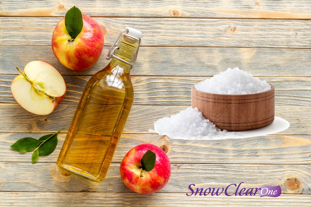 Giấm táo có khả năng cân bằng pH và kháng khuẩn hiệu quả, giúp tăng cường khả năng làm sạch da đầu khi kết hợp với muối. Trộn 1 muỗng canh muối biển với 1/2 chén giấm táo, pha loãng bằng nước ấm để giảm độ chua, sau đó massage hỗn hợp lên da đầu trong 15 phút. Gội sạch lại bằng dầu gội dịu nhẹ để kết thúc. Phương pháp này nên áp dụng đều đặn để đạt hiệu quả rõ rệt.